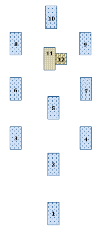 Beginning with Card 1, lay each card in turn-Face Down-through Card 12. When they have all been readied, turn each over, one at a time, revealing the information acquired. Remember, there is no need to rush. Take time to savor and think on each of the cards.